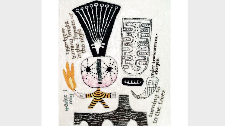 Det har gått drygt fyrtio år sedan Isa Öhman gick ut Konstfack. Basen i hennes arbete har varit de textila teknikerna - bildvävning från början, senare ryateknik på reliefartade former och lindade tygsträngar som sammanlänkade bildar tredimensionella figurer eller blir till beståndsdelar i applikationer/textila collage. På senare tid har hon gestaltat sina idéer i fria broderier, mycket i svart-vitt med inslag av färg, som här och nu. Under alla år har hon jobbat mot utställningar runt om i landet på gallerier, konsthallar och konstföreningar.